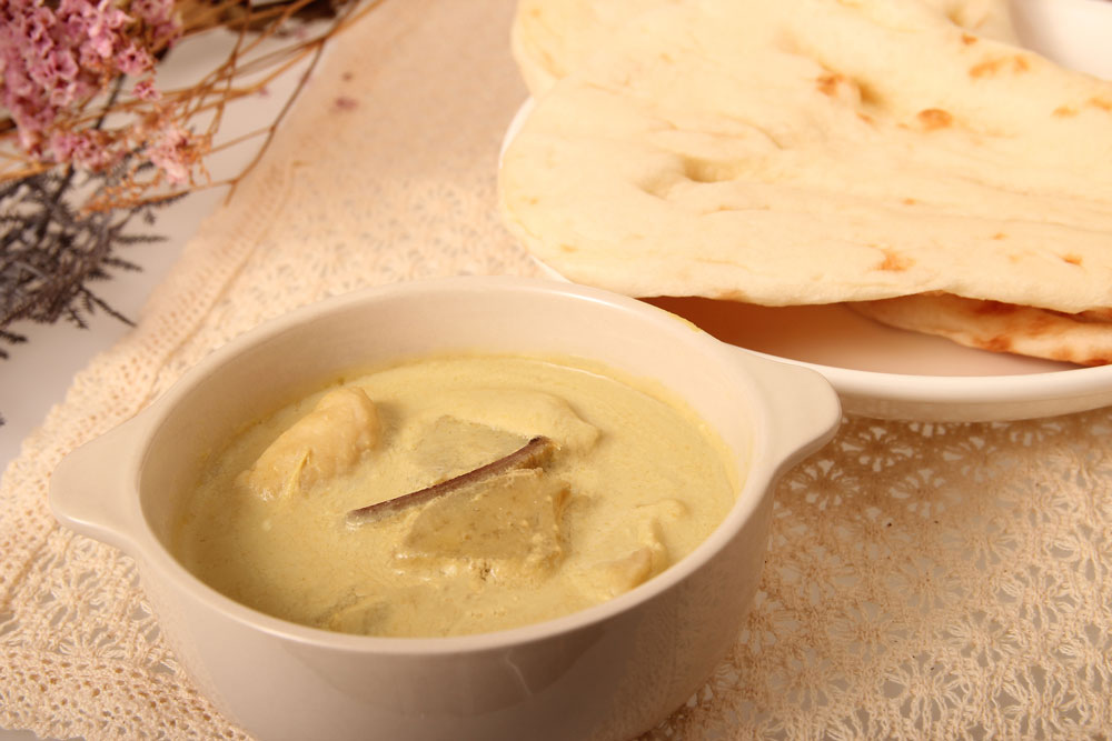 用意する材料は鶏肉だけ。あっさりとした風味の中にある青菜の香りが上品なカレー。バターチキンよりも辛さは感じるが控えめ。