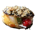 溢れそうなくらいに果物がてんこ盛りになったエクレア。