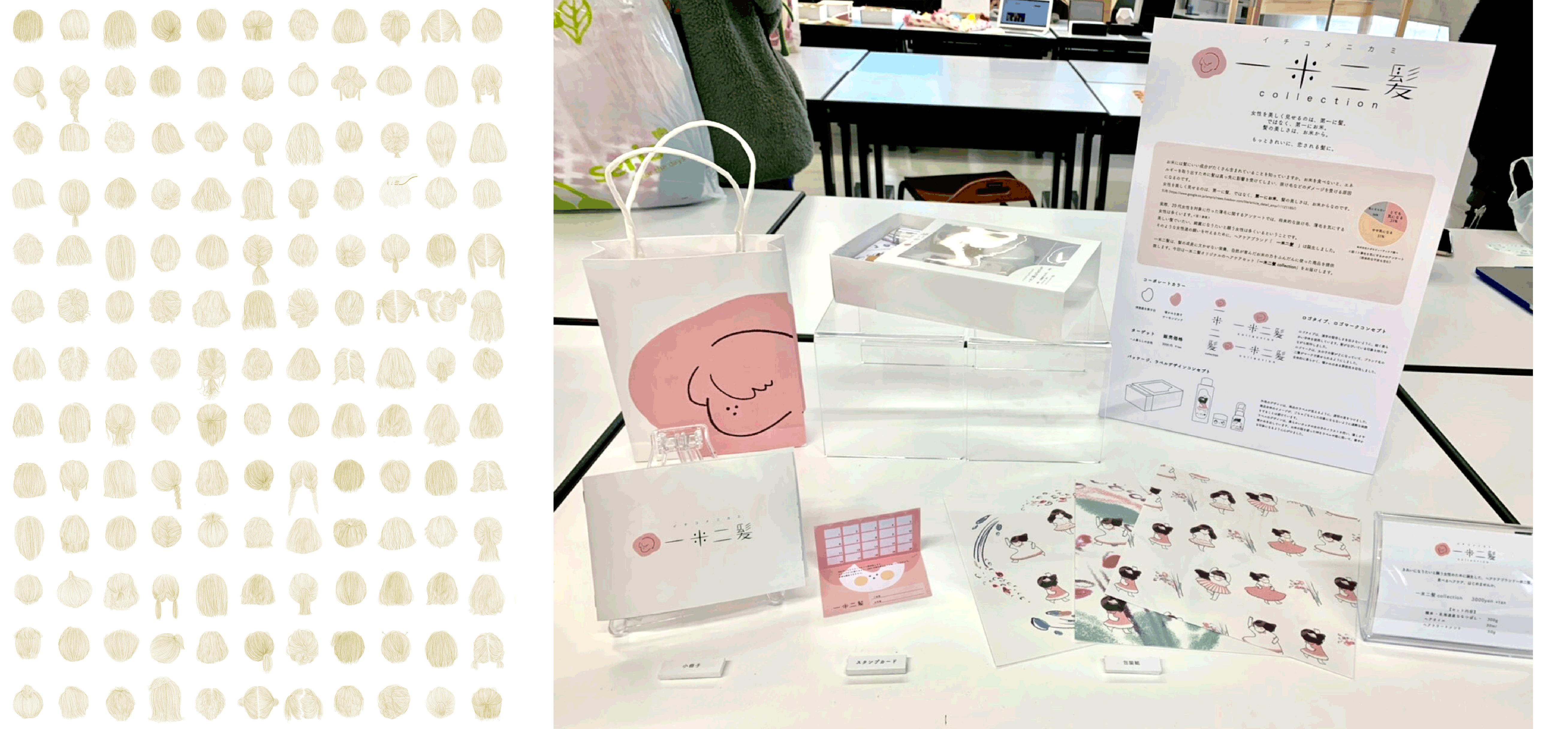 左のポスターは、髪の毛をモチーフに