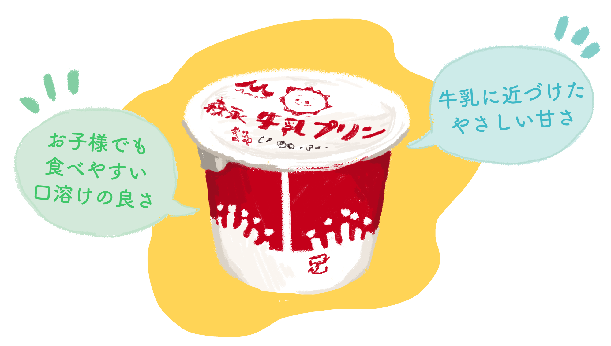 森永牛乳プリンは、子供の頃お母さんが作ってくれたホットミルクをお手本に作られました。冬の寒い日や風邪をひいたときに飲ませてもらった、あの優しい味わいと懐かしさがいつまでも味わえます。