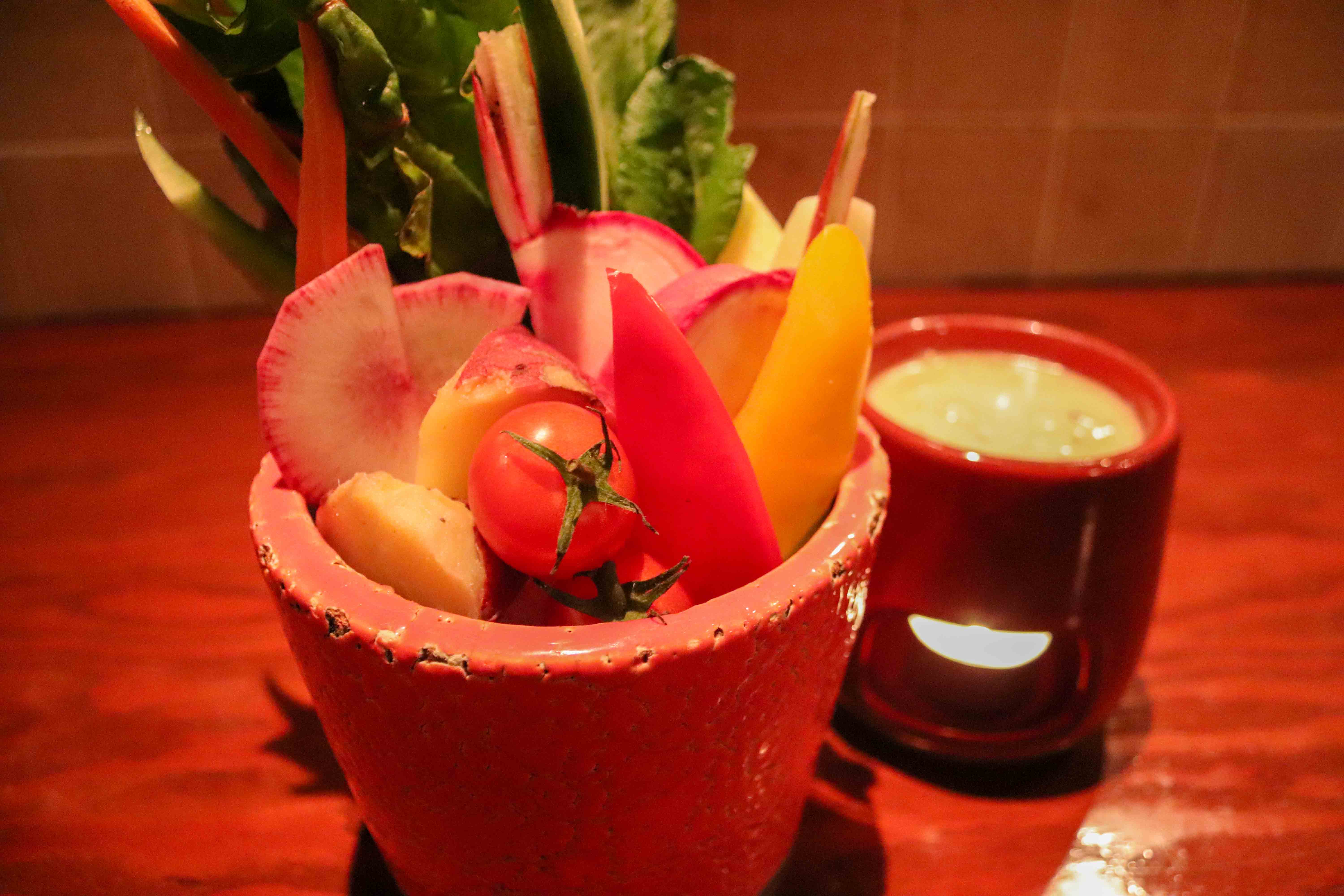 すずきちで提供しているバーニャカウダのソースは、ニンニクを丸焼きにすることで旨味を引き出し、クリームチーズを加えることでより食べやすいソースとなっている。また、野菜は新鮮な長岡の野菜を多く使っており、珍しい野菜を食べられるのも特徴だ。『女性はもちろん、子供や男性も新鮮な野菜を食べたくなるようなバーニャカウダ』を心がけている店長の彩加さん