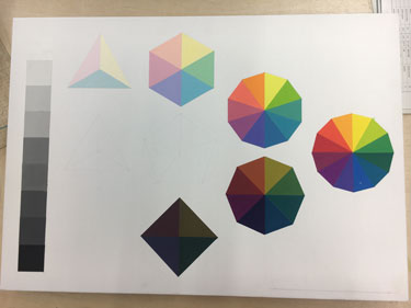 前期は他学科の領域にも触れながら、描写や立体、平面構成などあらゆる技法で「モノを作る」ために必要な基礎造形力を身につけます。 後期は視覚デザイン学科の領域にさらに踏み込んだ内容となり、一年を通してデザインに必要な基礎力を習得します。